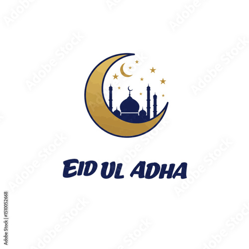 Decorative moon with mosque Eid ul adha design