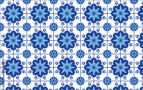 Decorative mosaic flowe blue color seamless pattern 019 png.