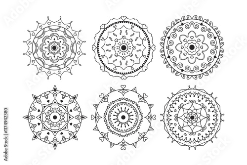 Decorative pattern mandala design. Easy Mandala Black and White Outline. Mandala for Coloring Pages