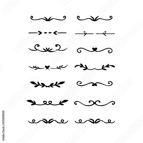 Decorative simple divider. Text dividers retro minimal line separators, Vector isolated geometric wedding card heart separator elements set. Text dividers. . Hand drawn vector illustration.