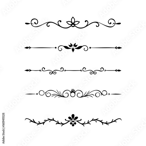 Decorative simple divider. Text dividers retro minimal line separators, Vector isolated geometric wedding card heart separator elements set. Text dividers. . Hand drawn vector illustration.