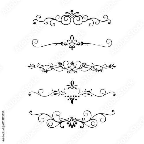 Decorative simple divider. Text dividers retro minimal line separators, elegant doodle frame borders. Vector isolated geometric wedding card heart separator elements set.