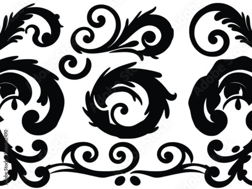 Decorative Swirl and Spiral Vector Elements – Stylish Ornaments for Logos, Tattoos, and Invitations silhouette on white background