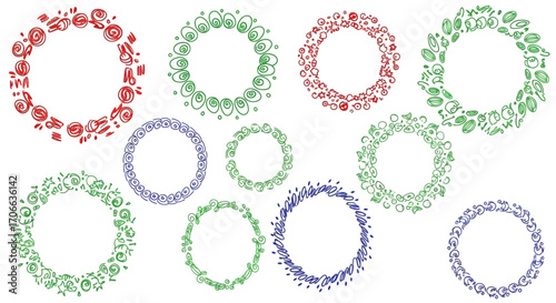 Decorative Vector Frames Illustration with Hand Drawn Circular Elements in Red Green and Blue Colors