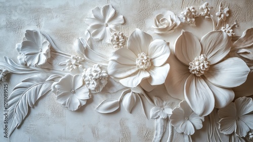 Decorative wall relief featuring intricate floral designs crafted from plaster in a modern interior setting