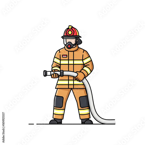 Dedicated fire rescue professional in full protective uniform prepares to operate a high-pressure water hose.