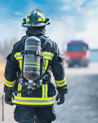 Dedicated Firefighter Preparing Equipment for Emergency Response in Government Career