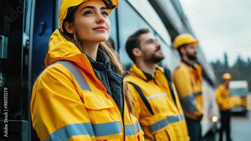 Dedicated Workers in Vibrant Safety Gear Outdoors