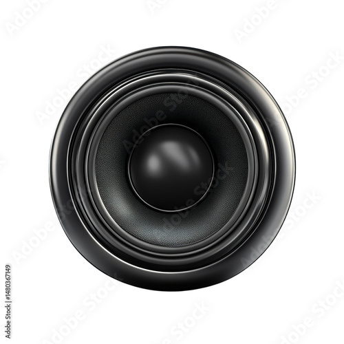Deep black speaker powerful sound audio tech isolated on black background on transparent background