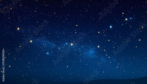 Deep Blue Night Sky with Glimmering Stars and Distant Galaxy