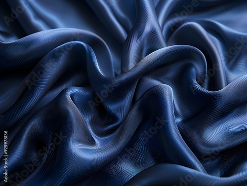 Deep blue silky fabric draped elegantly with gentle folds creating a luxurious texture and sheen