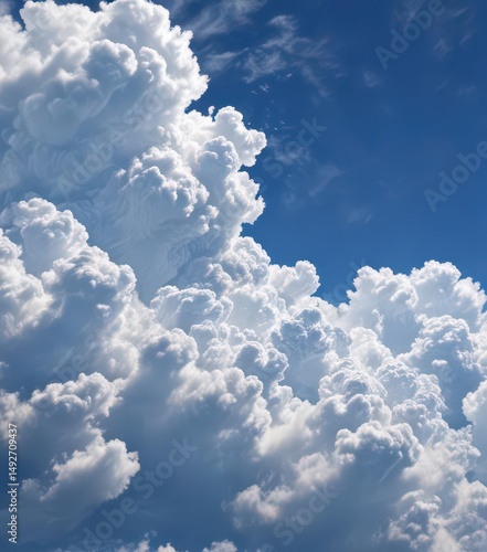Deep blue sky, billowing white clouds create depth , stunning, white clouds