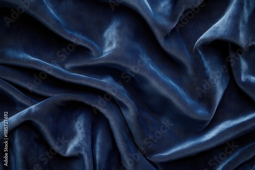 Deep blue velvet fabric texture; rich, luxurious folds. Ideal for backgrounds, fashion, or luxury product displays.