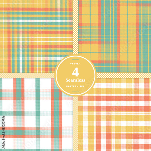 Deep Burgundy Tartan patterns fabric texture. Modern Cherry Red Seamless Tartan Set of 4
