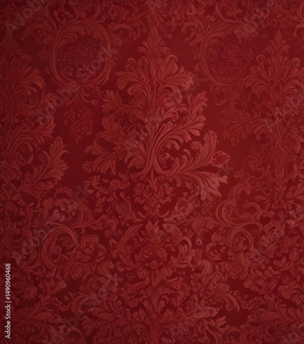 Deep crimson damask wallpaper, intricate detailing , texture, interior