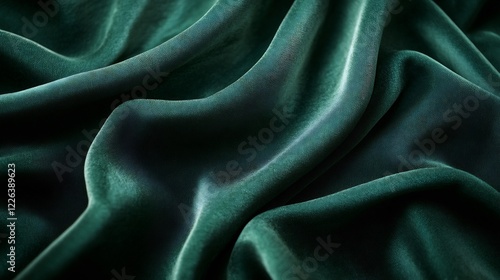 Deep Emerald Velvet Drapes Softly Luxurious Textured Fabric. AI Generated
