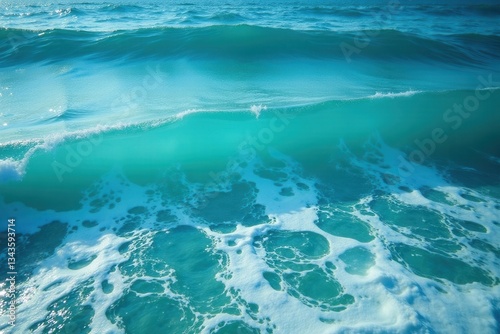Deep ocean waves with foamy turquoise water and gentle ripples , texture, natural