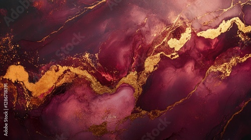 Deep pink marble with rich gold veins and a high-gloss finish