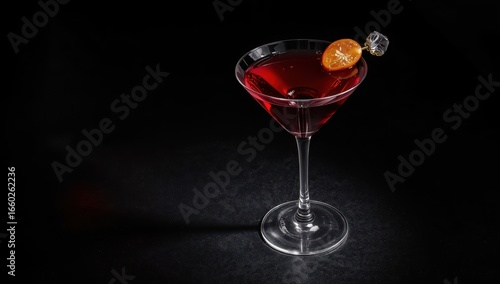 Deep red blood plum martini glows under dramatic dark bar lighting