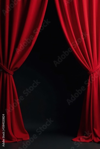 Deep red theatrical drape against stark black Heavy folds, luxurious material , texture, velvet, dramatic