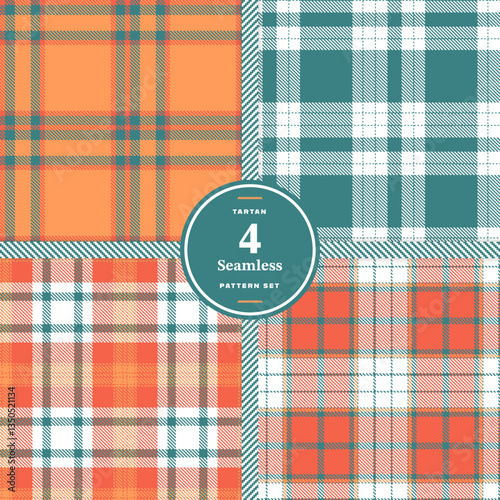 Deep Scarlet and Soft Crimson Seamless Tartan Fabric Design Set of 4