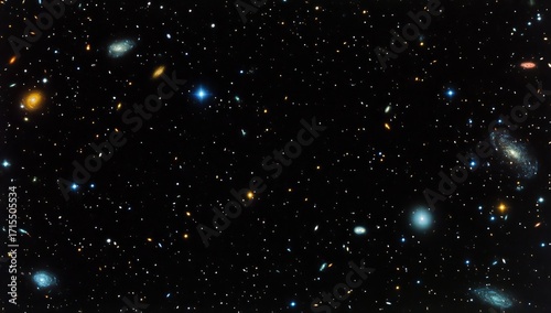 Deep space view showcasing numerous galaxies and stars in a vast cosmic field