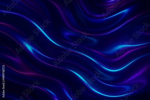 Deep space-inspired glossy liquid in cosmic purple, indigo, and glowing cyan streaks, smooth wave motion with reflective highlights, surreal and modern