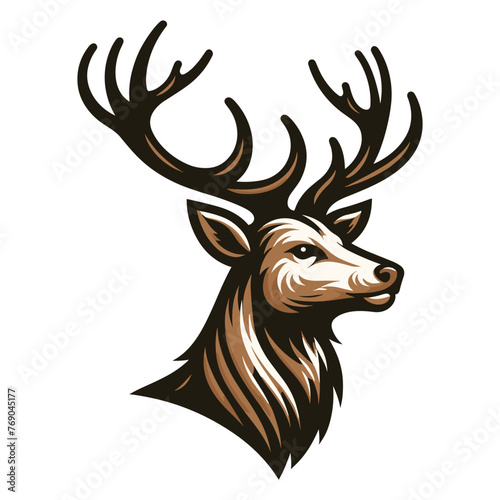 Deer head face design illustration, reindeer head with antlers logo mascot illustration, wild mammal animal concept. Vector template isolated on white background