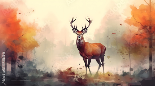 Deer in a nature Watercolor Style