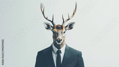 Deer in a suit. A captivating portrait of a deer dressed in formal business attire, exuding an air of professionalism and authority.