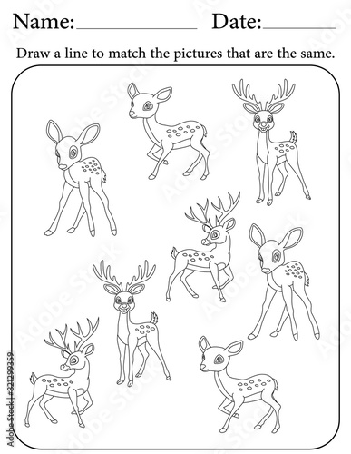 Deer Puzzle. Printable Activity Page for Kids. Educational Resources for School for Kids. Kids Activity Worksheet. Match Similar Shapes