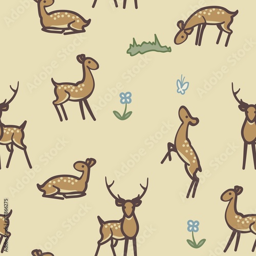 Deer. Seamless pattern. Vector illustration.