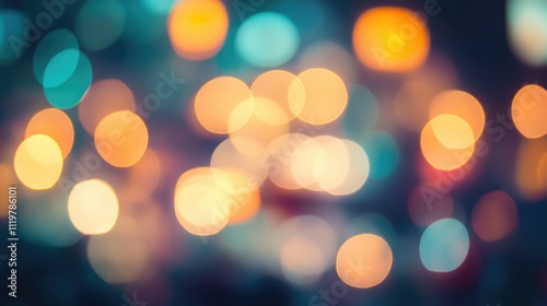 Defocused bokeh background of concert crowd with vibrant stage lights creating a dreamy atmosphere of live music entertainment.