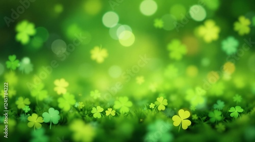 defocused green shamrock bokeh effect creating dreamy st patrick's day atmosphere ideal for creative designs and festive backgrounds