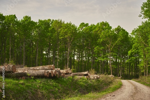 Deforestation is a threat to the environment and sustainability. The stumps of the cut-down trees. Damage caused by human activities