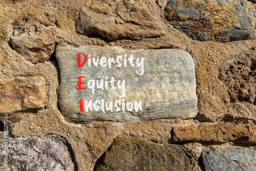 DEI diversity equity and inclusion symbol. Concept words DEI diversity equity inclusion on big stone. Beautiful stone wall background. Business DEI diversity equity and inclusion concept. Copy space.