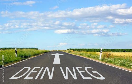 Dein Weg in die Zukunft - Straße mit Pfeil und Text