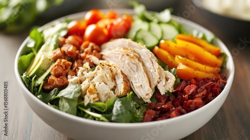 Delectable chicken salad bowl featuring a colorful mix of fresh ingredients