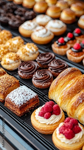 Delectable Display: Close-up of Exquisite Pastries in a Bakery Showcases Artistry and Flavor.