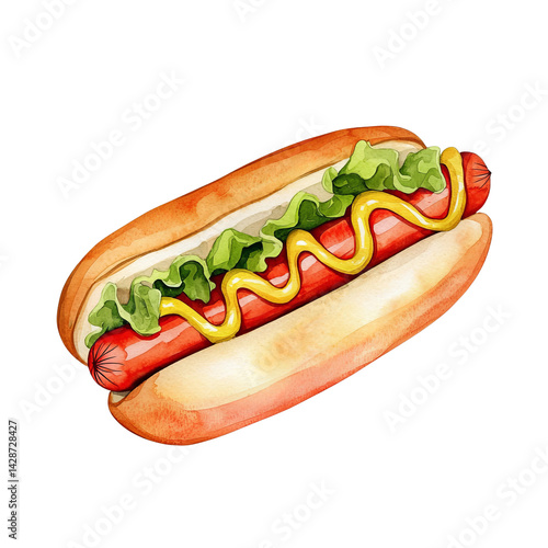 Delectable Hotdog: A mouthwatering hot dog, adorned with fresh lettuce and a generous drizzle of mustard, nestled within a soft, golden bun, offers a perfect image for any food lovers.