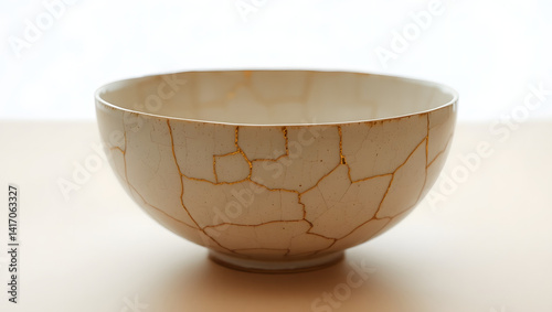 Delicate Antique Cracked Ceramic Bowl with Gold Crackle Glaze