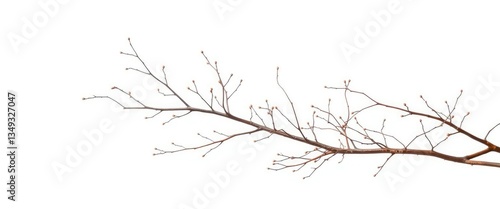 Delicate, bare branches isolated against a pure white backdrop, nature, stark