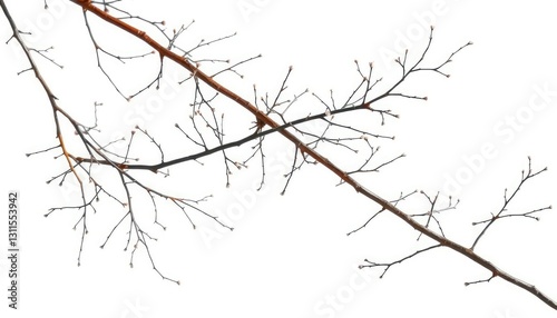 Delicate, bare branches isolated against a pure white backdrop, still life, cold