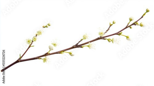 Delicate blossom branch with buds and flowers on white background for nature design