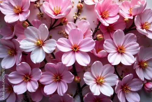 Delicate blossoms arranged in a square tessellation , repeat, surface, tile