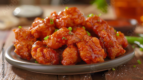 Delicate boneless chicken wings marinated in spicy buffalo sauce and sweet-smoky BBQ sauce.