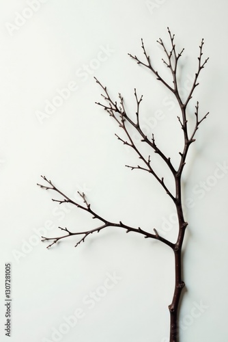 Delicate branches with bare twigs on white surface, nature, leafy, simple