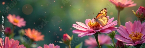 Delicate butterfly surrounded by flowers, shape, wings, blooms
