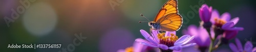Delicate butterfly wings spread wide, perched on vibrant violet bloom , invertebrate, vibrant