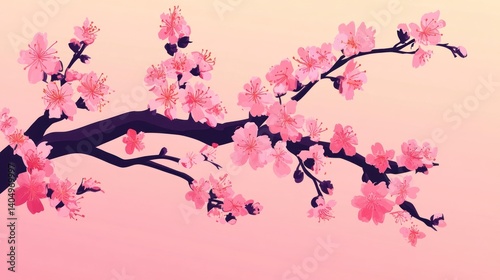 Delicate Cherry Blossom Branch Against Pastel Sky